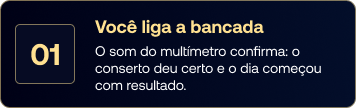 O som do multímetro confirma: o conserto deu certo e o dia começou com resultado.