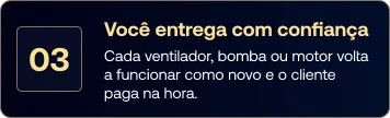 Cada ventilador, bomba ou motor volta a funcionar como novo e o cliente paga na hora.