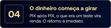PIX após PIX, o que era um teste vira renda. O retorno é imediato.